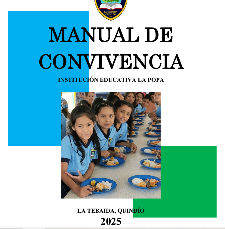 La Institución Educativa La Popa presenta la más reciente versión de su Manual de Convivencia, un documento fundamental que orienta la vida escolar y fortalece los valores de respeto, responsabilidad y compromiso entre toda la comunidad educativa. Invitamos a estudiantes, padres de familia y docentes a conocerlo y aplicarlo como guía para la sana convivencia y el crecimiento integral.